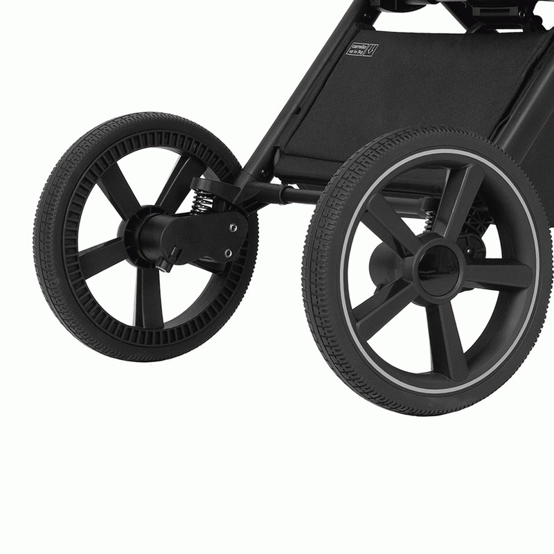 · Колёса большие, из резины, не боятся проколов и перепада температур. Передние манёвренные с фиксацией в положение «прямо», задние большого диаметра для лучшей проходимости.