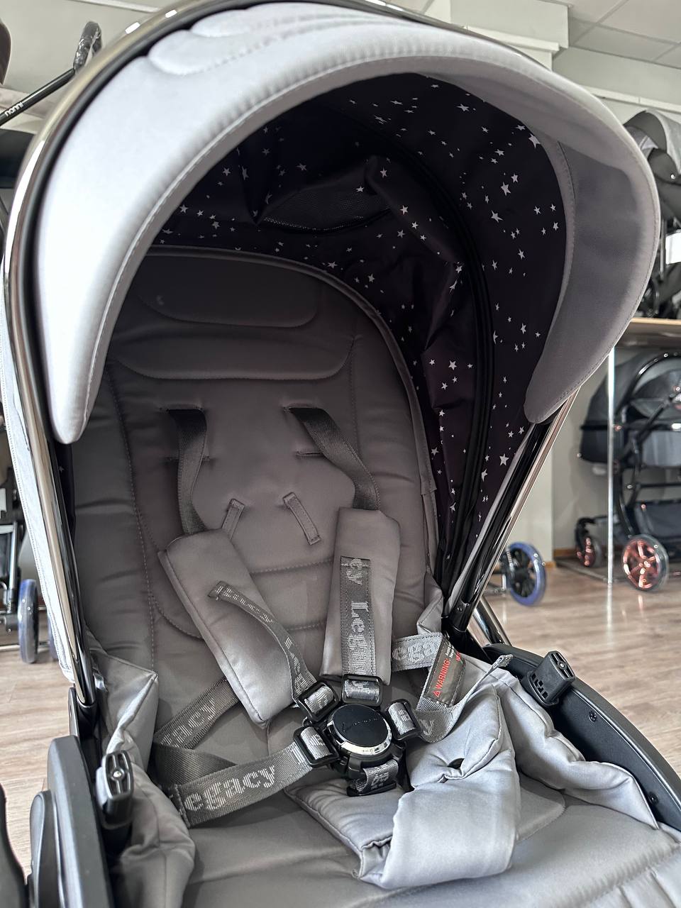 — прогулочный блок в этой коляске расположен ниже — подросшему малышу будет удобно садиться самостоятельно